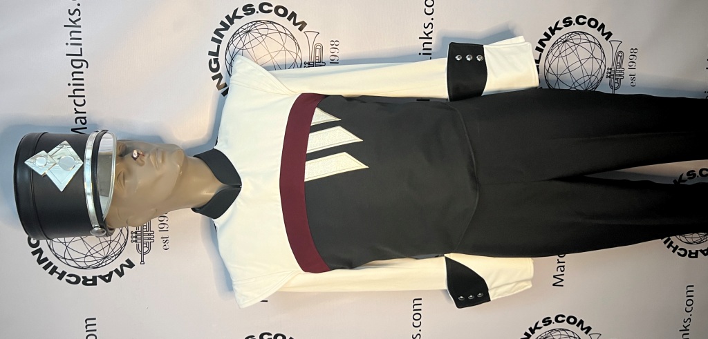 97 Burgundy, White and Black Fruhuaf Marching Band Uniforms