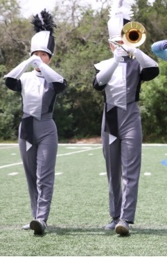 60 Navy Blue and White with Gold trim Marching Band Uniforms